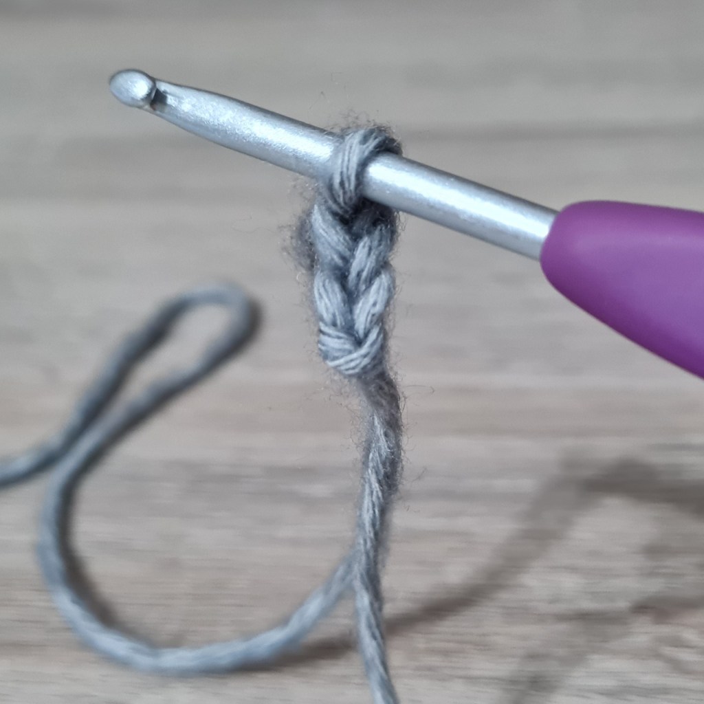 3. Put the number of stitches needed into the 2nd chain from the hook (the 1st chain you made)…