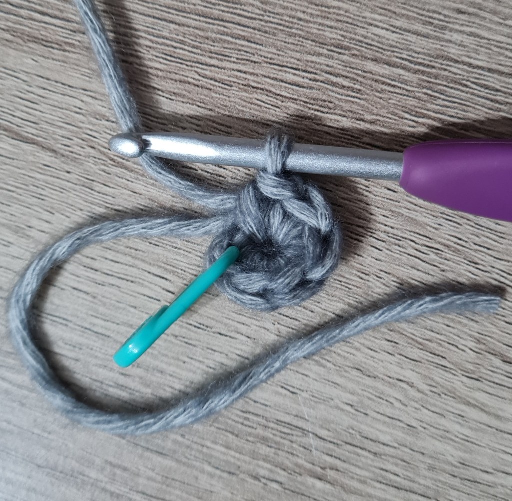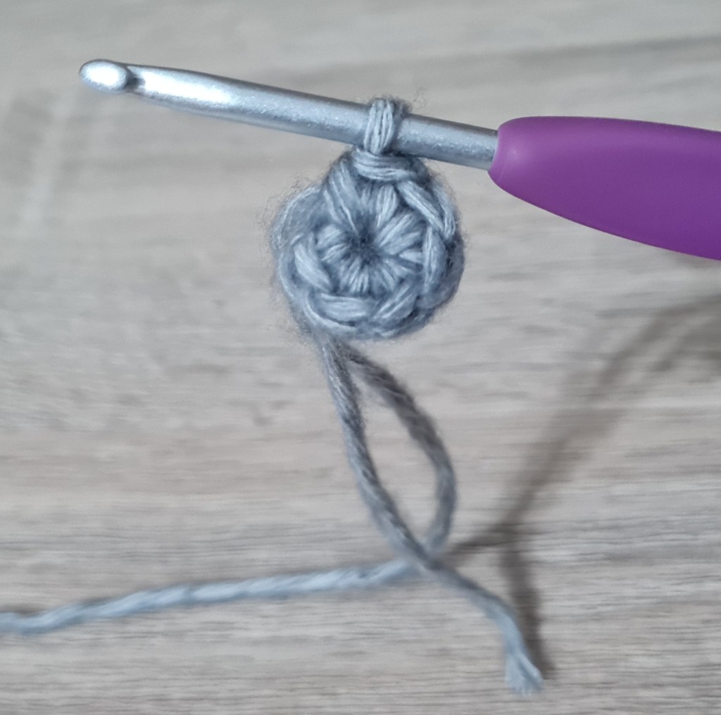I use a magic ring to start most of the pieces in my patterns, but the Chain 2 mehod (ch2) can also be used – picture instructions for starting a piece using ch2 are below.