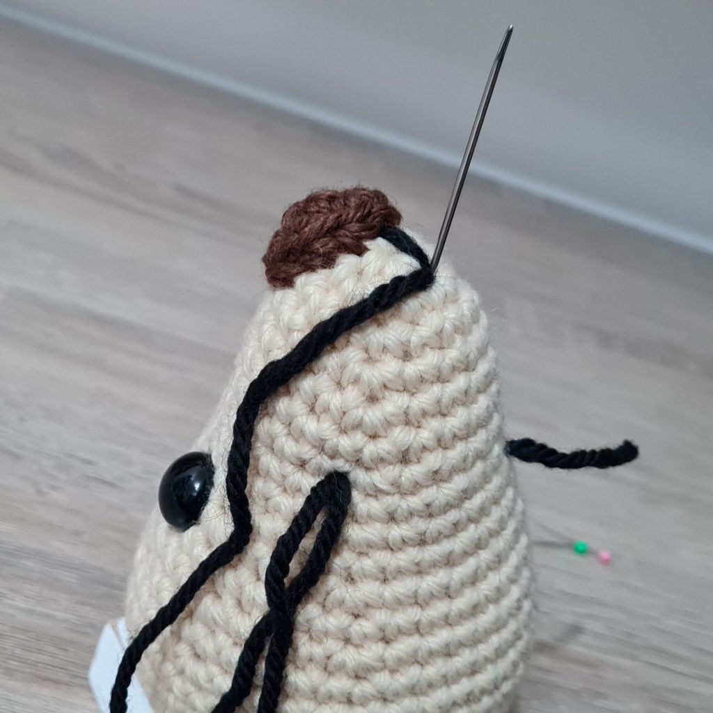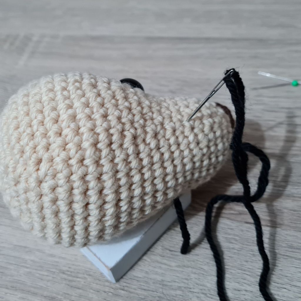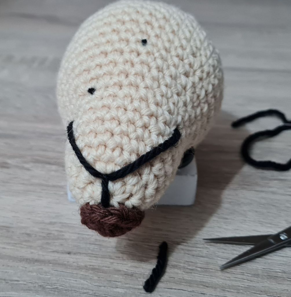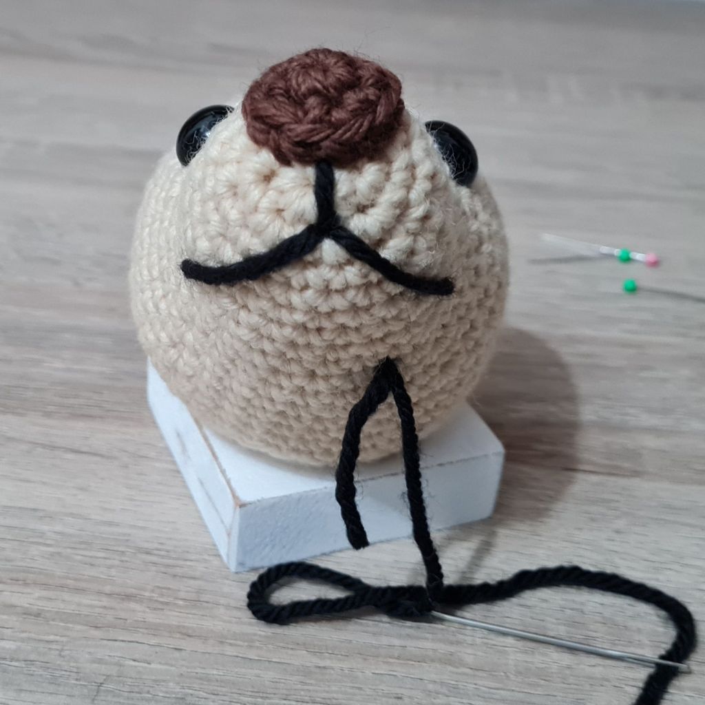 Embroidering on noses, smiles, eyebrows etc. can be difficult but I got better at this with practice – and patience… There are lots of different methods but I found the following method best for me: