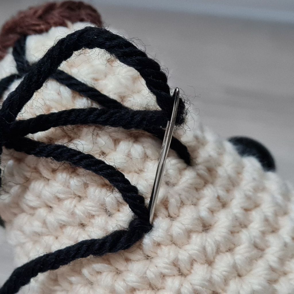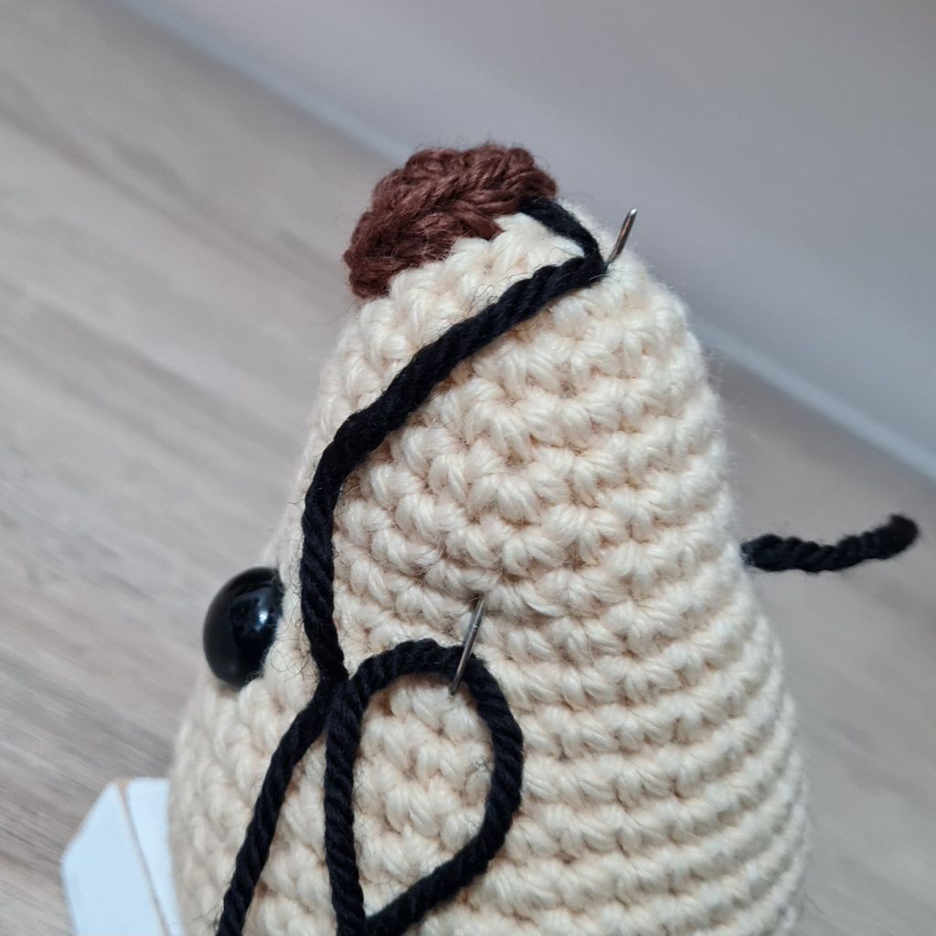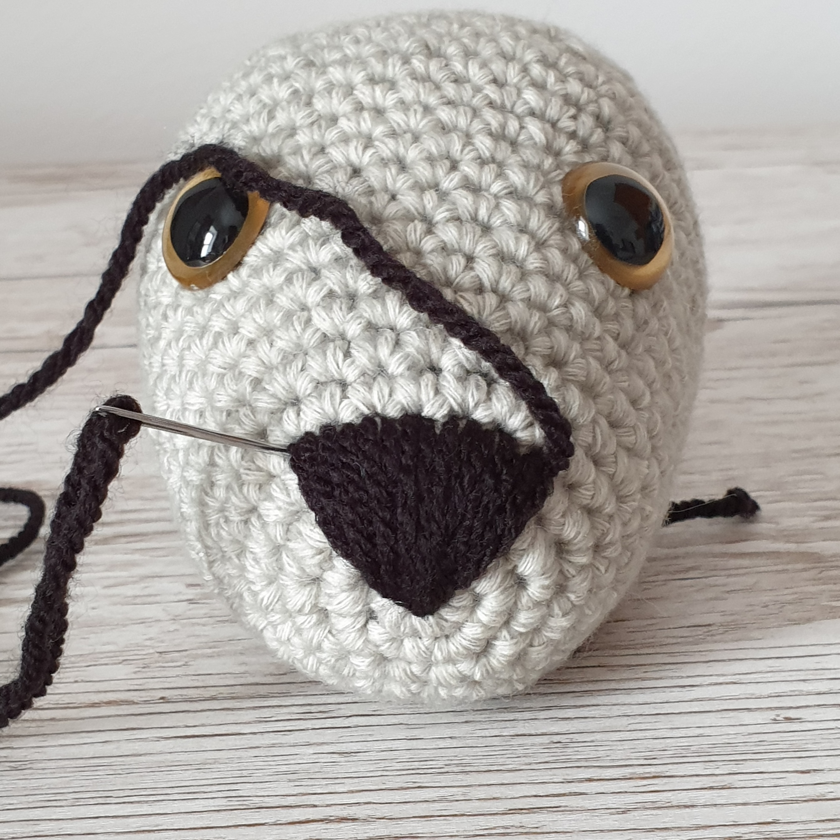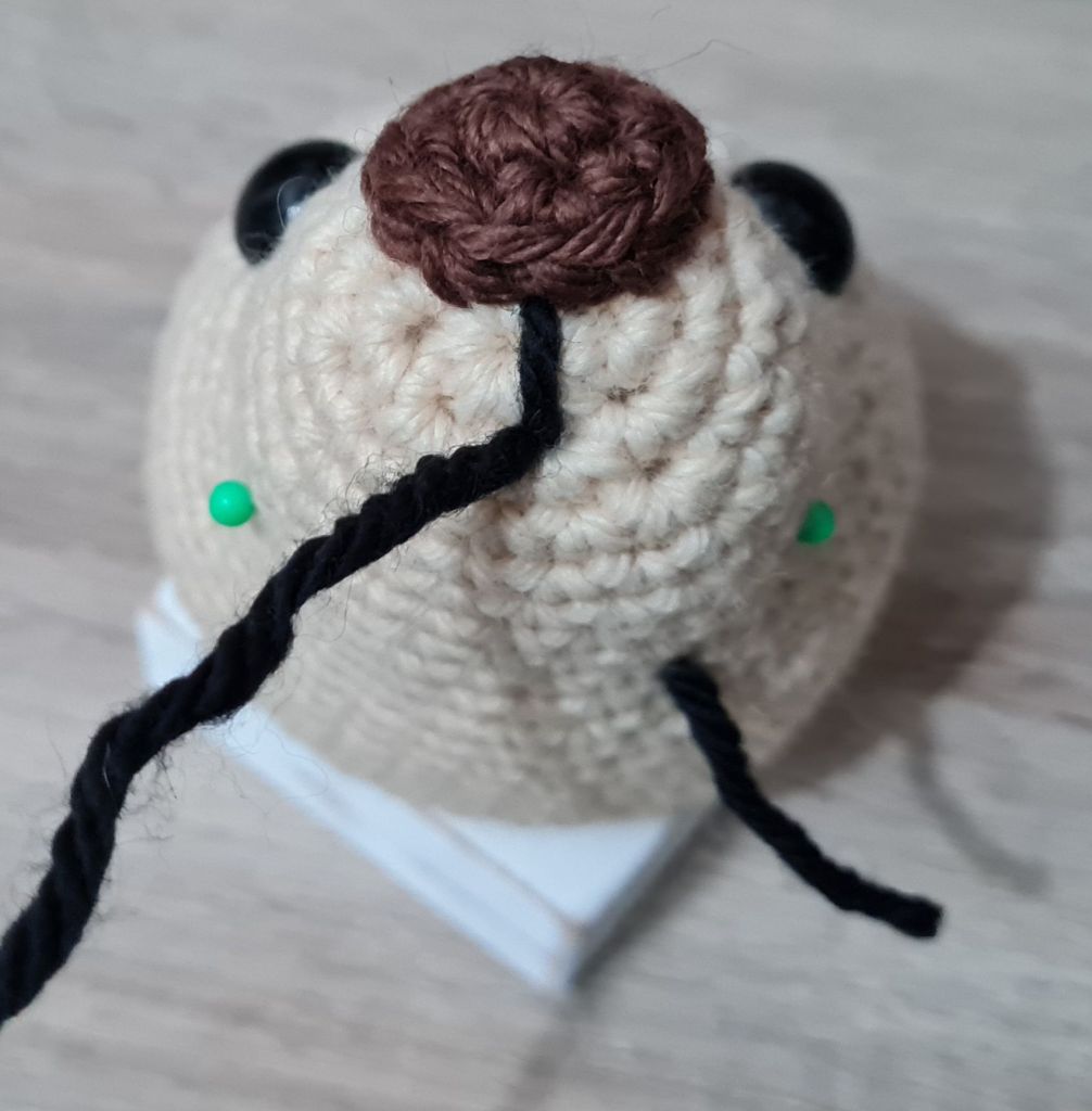 Embroidering on noses, smiles, eyebrows etc. can be difficult but I got better at this with practice – and patience… There are lots of different methods but I found the following method best for me: