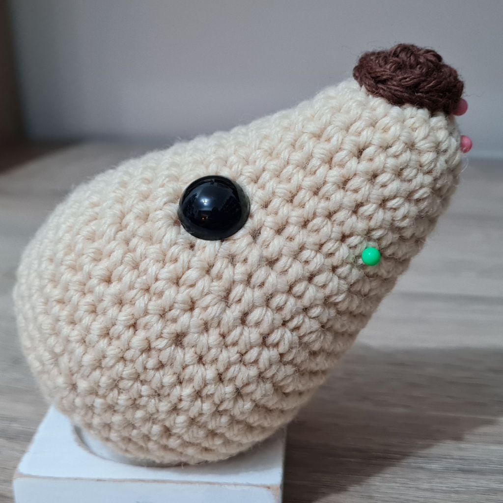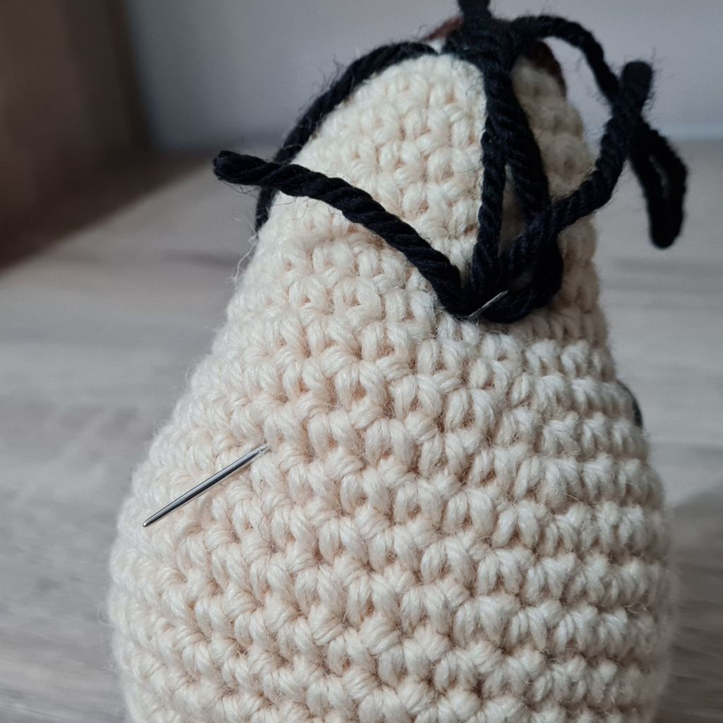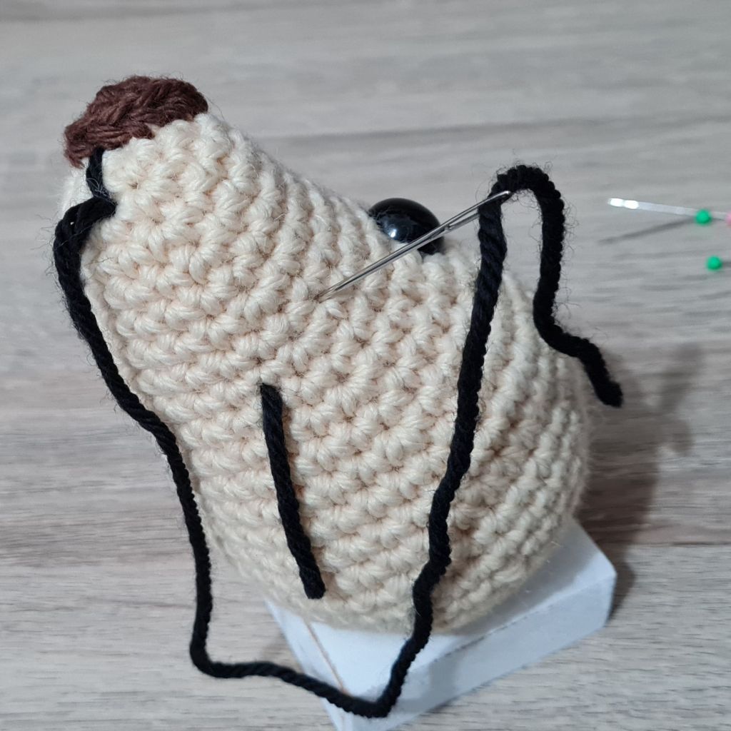 8. Squish the stuffing around until the ends of the yarn go inside the piece and can no longer be seen, or you can insert your needle and move the stuffing around a little