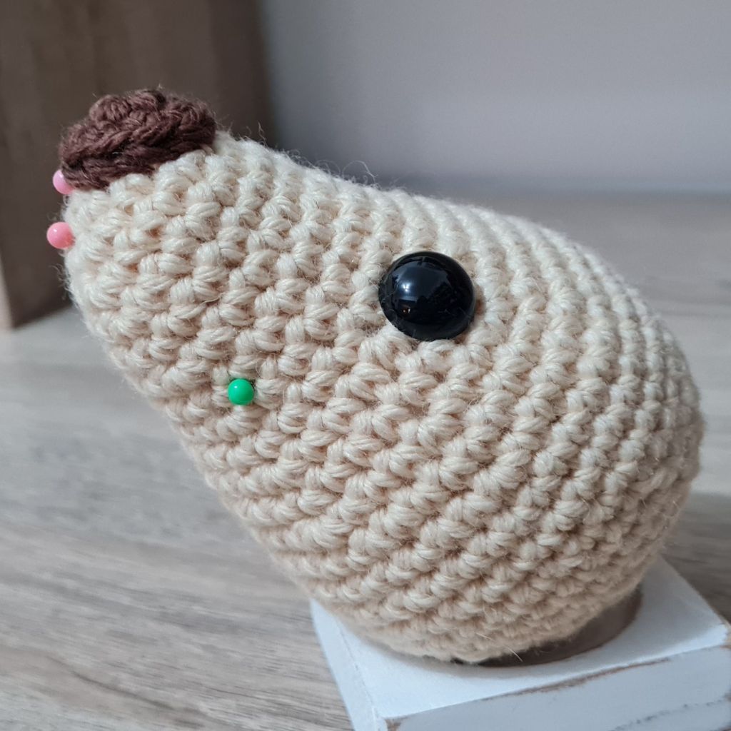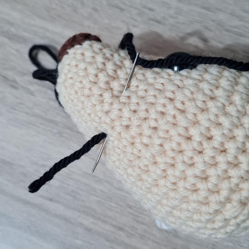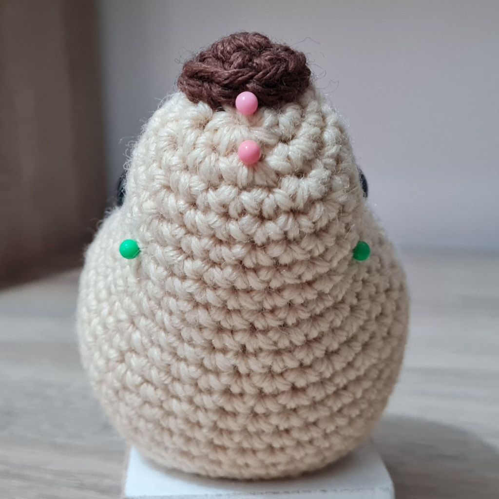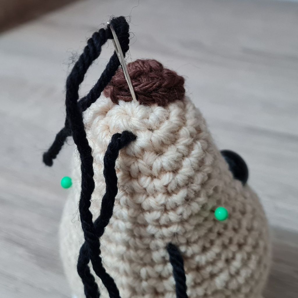 8. Squish the stuffing around until the ends of the yarn go inside the piece and can no longer be seen, or you can insert your needle and move the stuffing around a little