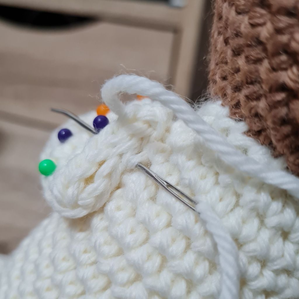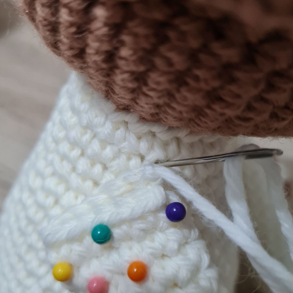When I first started making amigurumi, I found the hardest part was the sewing. Sewing the head, arms, legs etc. on can be very tricky at first, but the more I did it the better I got and it usually doesn’t bother me now (usually!) – I also found that switching to a bent/curved-tip needle made it much easier… once I had got used to the needle.