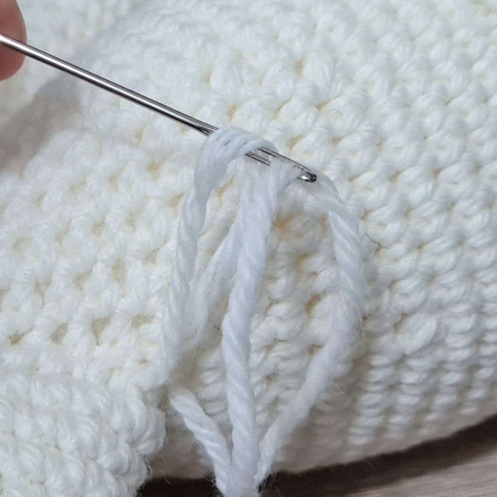 I use this method for sewing on pieces where the top loops will be flat against the other piece, like ears that stand up, closed heads, legs and some tails: